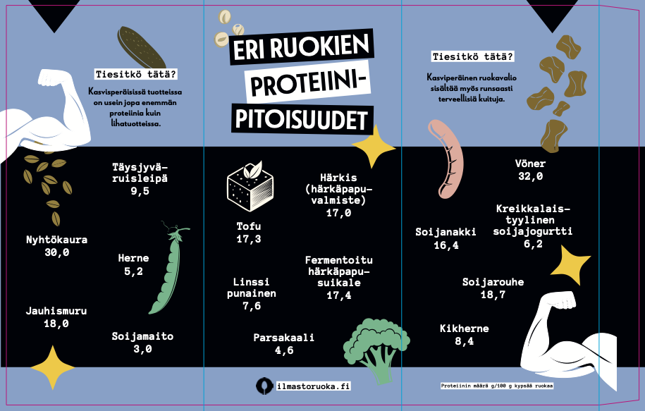 Eri ruokien proteiinitaulukko juliste